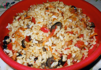 Cuando estén a nuestro gusto las verduras salteadas, añadir el arroz cocido y escurrido (este es el momento en que si queremos que el arroz salga amarillo tendremos que añadir una cucharadita de cúrcuma). Salar. Saltear durante un par de minutos y servir.
