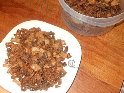Lo que encontré en la Web me puso en el camino, pero en lo que encontré me faltaba algo. No conseguí que se quedara tan crujiente como nos gusta. La pista la tenía en la propia denominación que usa IKEA: cebolla tostada. Está claro que en el proceso se fríe, pero en las recetas que encontré ninguna hablaba de tostar la cebolla en ningún momento. Así que tomé mis riesgos y en el final de la elaboración incluir un paso por el horno a baja temperatura (no quería que se me convirtiera en carbonilla).