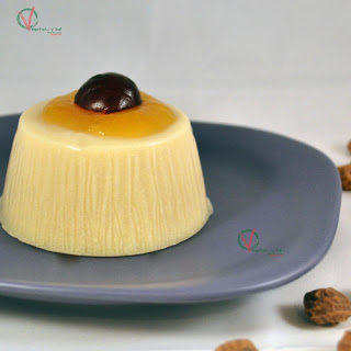 - Verter en los moldes (tipo flanera) y dejar que se vaya enfriando. Después llevar al frigorífico hasta que esté bien fría y cuajada la panacota. (Al servir se puede decorar, por ejemplo con mermelada de albaricoque casera y media cereza natural)